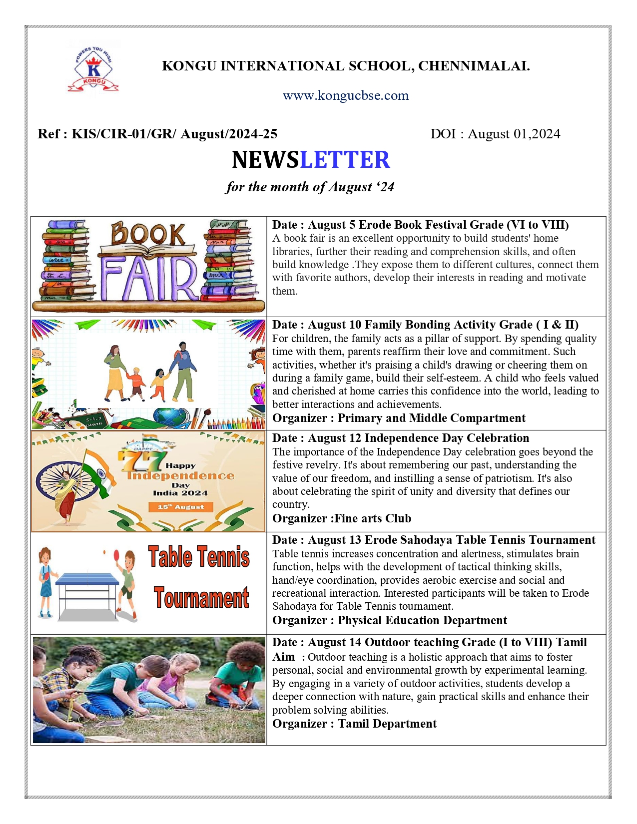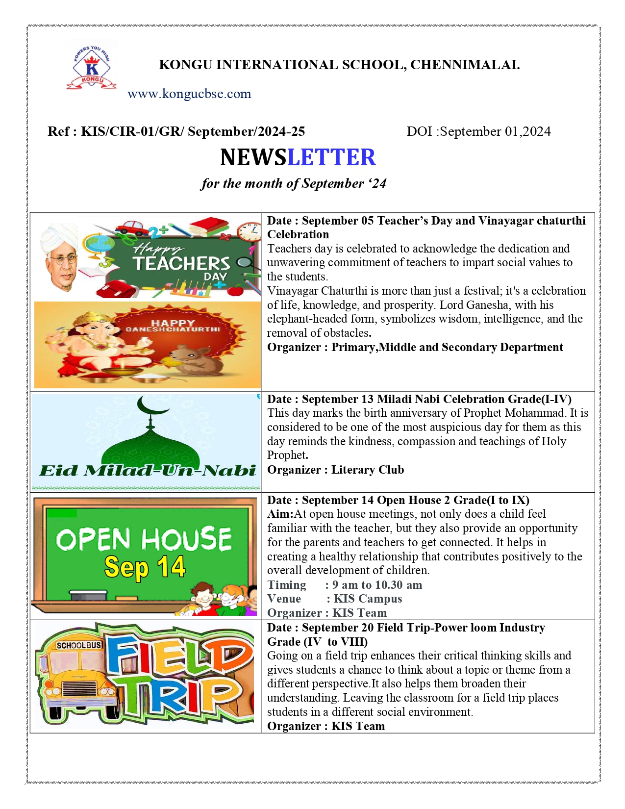 Kongu CBSE School Newsletter